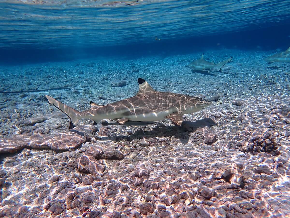 Located in Fakarava Atoll, a UNESCO Biosphere Reserve, the Tumakohua Pass is famous for its “wall of sharks.” The endless supply of food here attracts sharks and brings scuba divers from all over the world to see them. For snorkelers, it is also a beautiful site to discover, both in the pass which can be explored by drift snorkeling and on the reef flat which can be snorkeled freely from the island shore. In the area, you will discover coral reefs inhabited by Napoleon wrasse, several species of sharks, and a myriad of colorful fish.