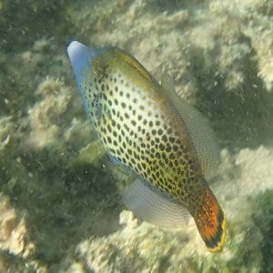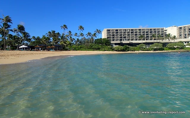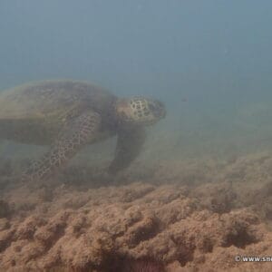 The seabed at Kuilima Cove is very poor with almost no coral. In the rocky areas (↕2-5ft/0.5-1.5m), particularly along the rocks to your right, you will come across several species of butterflyfish, parrotfish, and wrasse. In the deepest sandy areas, at the center of the cove (↕7-10ft/2-3m), you are likely to encounter green sea turtles.