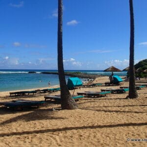 From Honolulu International Airport, it takes a little over an hour (40mi/60km) to reach the spot by taking the H1 west, the H2, and then the Kamehameha Highway. You can follow the signs to Haleiwa/North Shore. After reaching the coast at Haleiwa, continue east, past Pupukea, and continue for about 6 miles (10km) You will then see the Turtle Bay Resort entrance on your left.