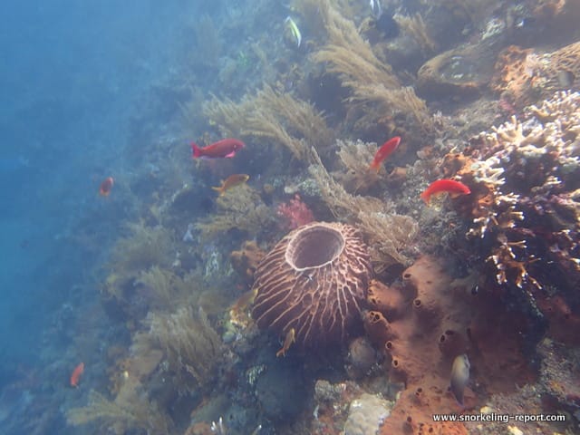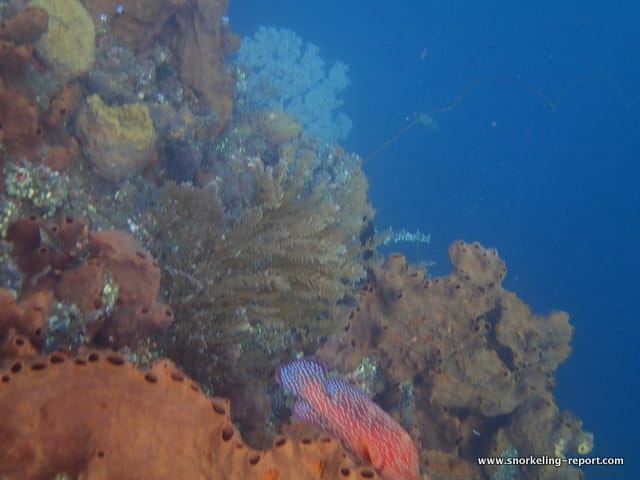 Latticed butterflyfish, sunburst butterflyfish, Moorish idols, parrotfish and wrasse are also commonly seen at this location. If you are lucky, you will maybe spot a coral hind, one of the most beautiful reef fish of Southeast Asia.