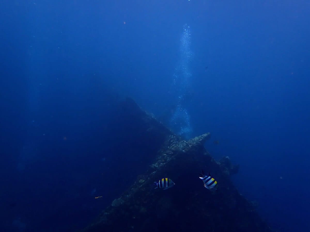 A huge and colorful range of fish has made the USAT Liberty their home, including schools of yellowfin surgeonfish, sergeant majors and, in deeper areas, hundreds of sea goldie.