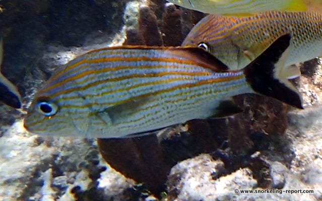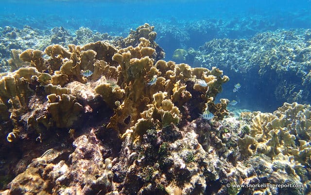 The snorkeling area covers the coral reef facing Half Moon Bay. It extends about a hundred meters southwards over the rocky point (see map above).