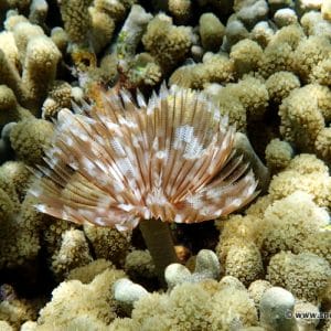 Getting closer to the reef (↕1-3m), the seabed is now covered with colorful coral, sea rod, sea fans, and sea whips. Underwater life is also denser: hundreds of blue tangs, schools of sergeant majors and bluehead wrasse dashing over the rocks can all be seen here. Hundreds of species can potentially be seen in West End.