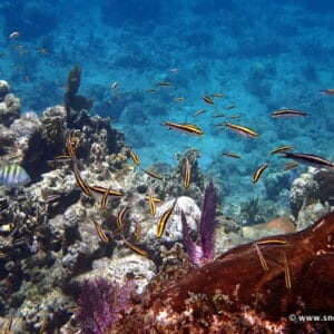 Keep your eyes peeled for Spanish hogfish, scrawled filefish, three Caribbean butterflyfish species, and even small groupers.