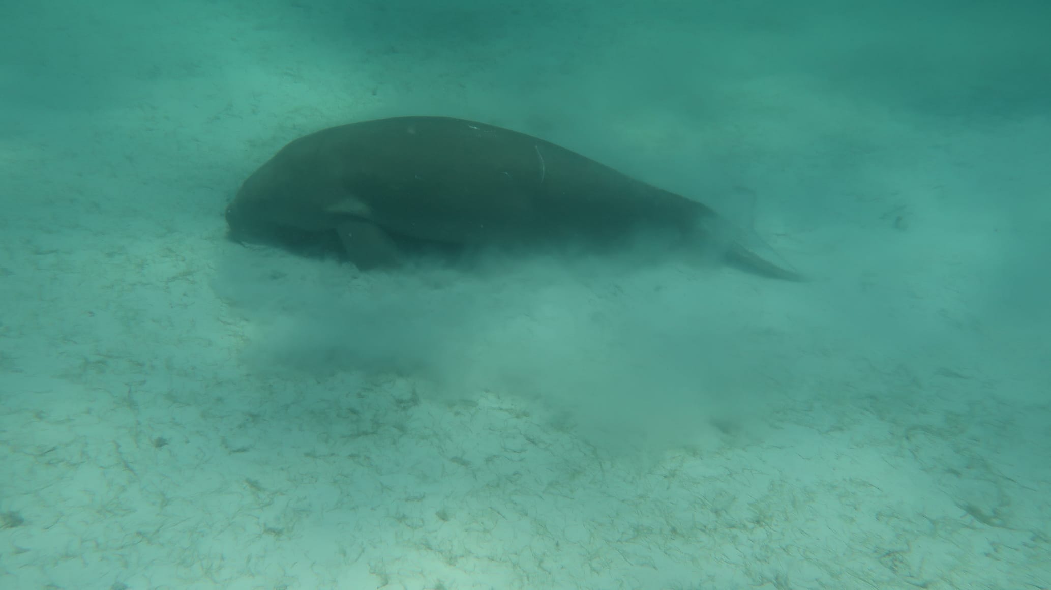 Dugongs like the sandy meadow areas surrounding the island, where they come to feed. This marine environment does not attract many other notable species, except green sea turtles that sometimes come graze on the seabed.